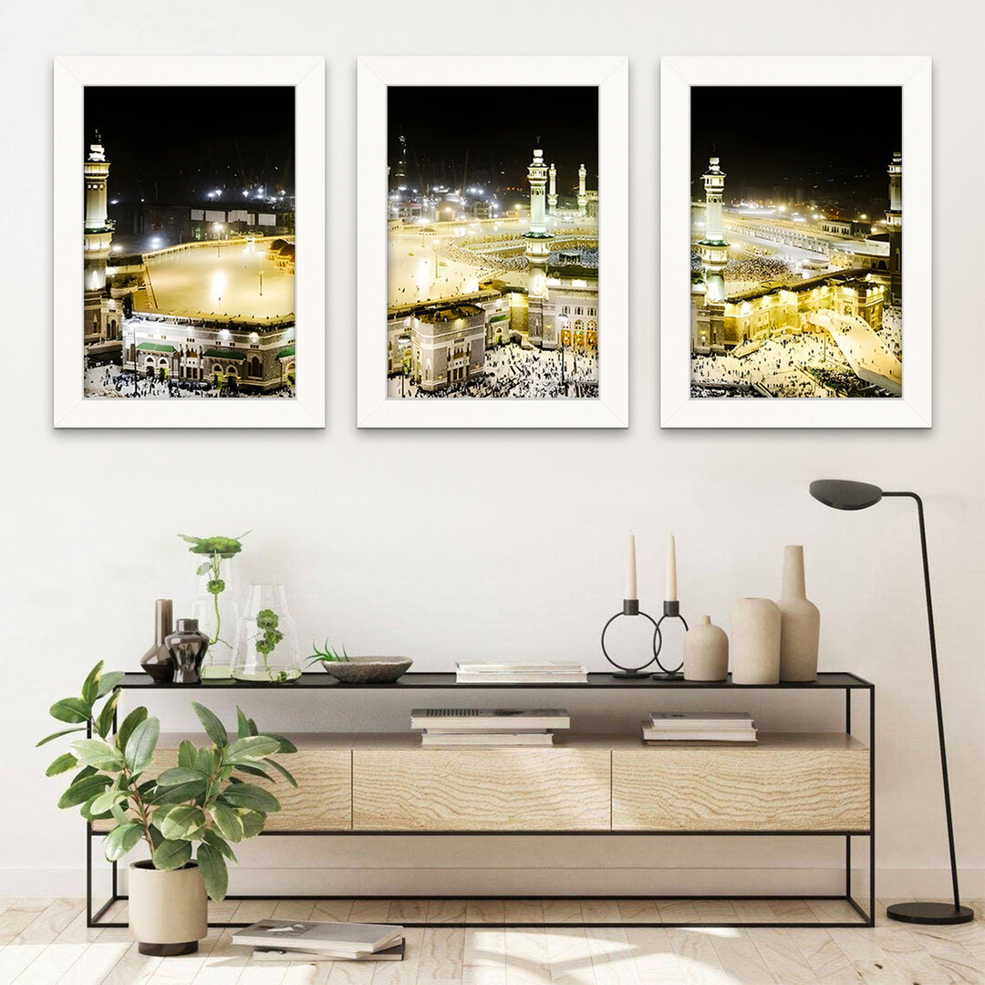 • Set of 3 canvas prints featuring Mecca and Hajj scenes