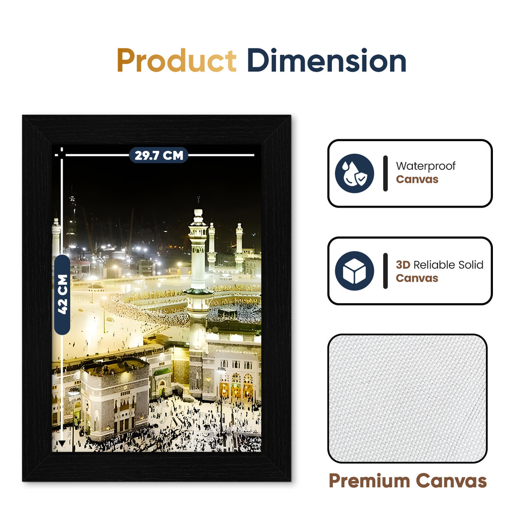Perfect for living rooms, bedrooms, prayer spaces, or offices, this 3-piece set combines artistry and devotion, making it a thoughtful gift for Islamic occasions.