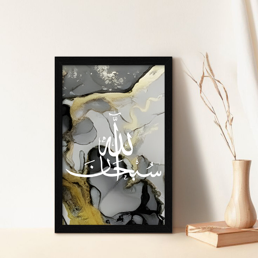 The art features elegant Arabic calligraphy and a clean finish. Each print comes professionally framed and ready to hang. Whether placed in a living room, prayer area, hallway, or office, this set adds both reverence and refined style to your interior.