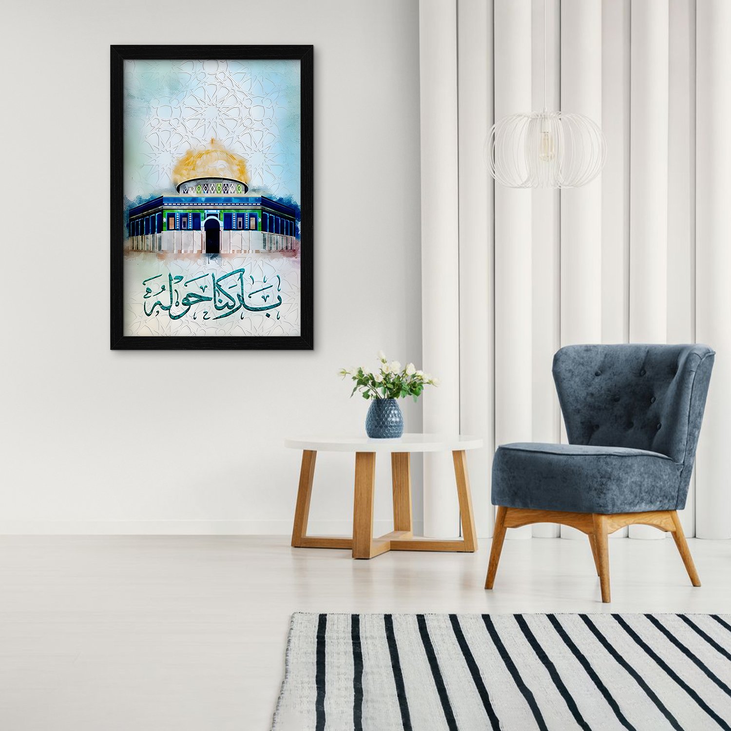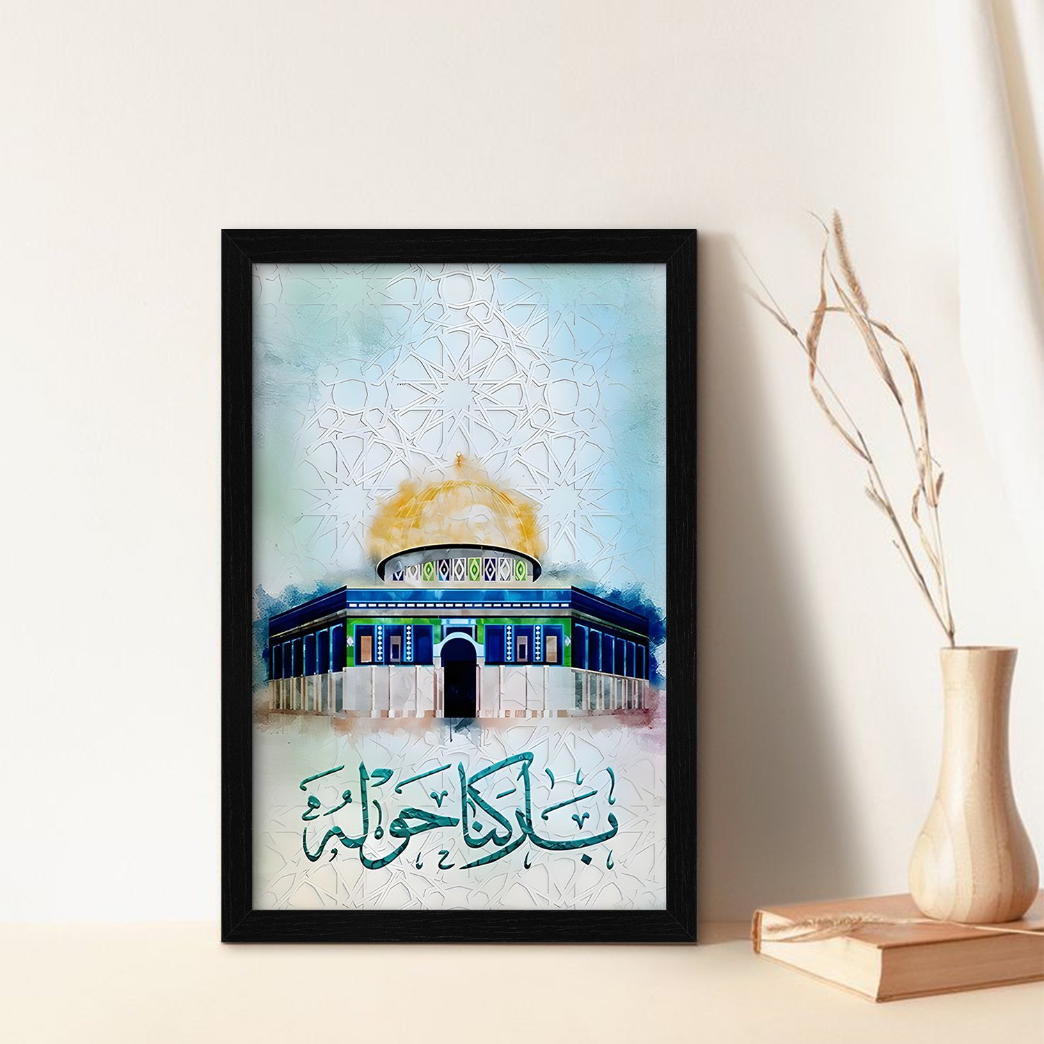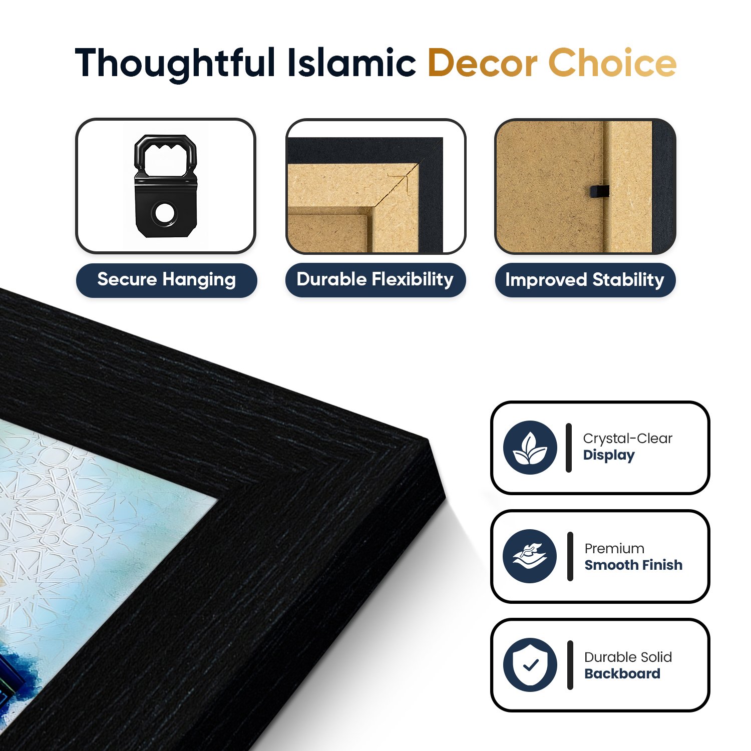 _x000D_This framed 3-piece set perfectly combines devotion, artistry, and modern design. Displaying the three iconic Masjids, it adds both spiritual significance and visual elegance to your home décor, making it a standout addition to any wall.