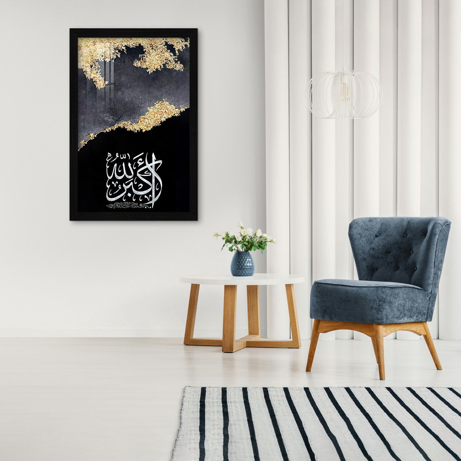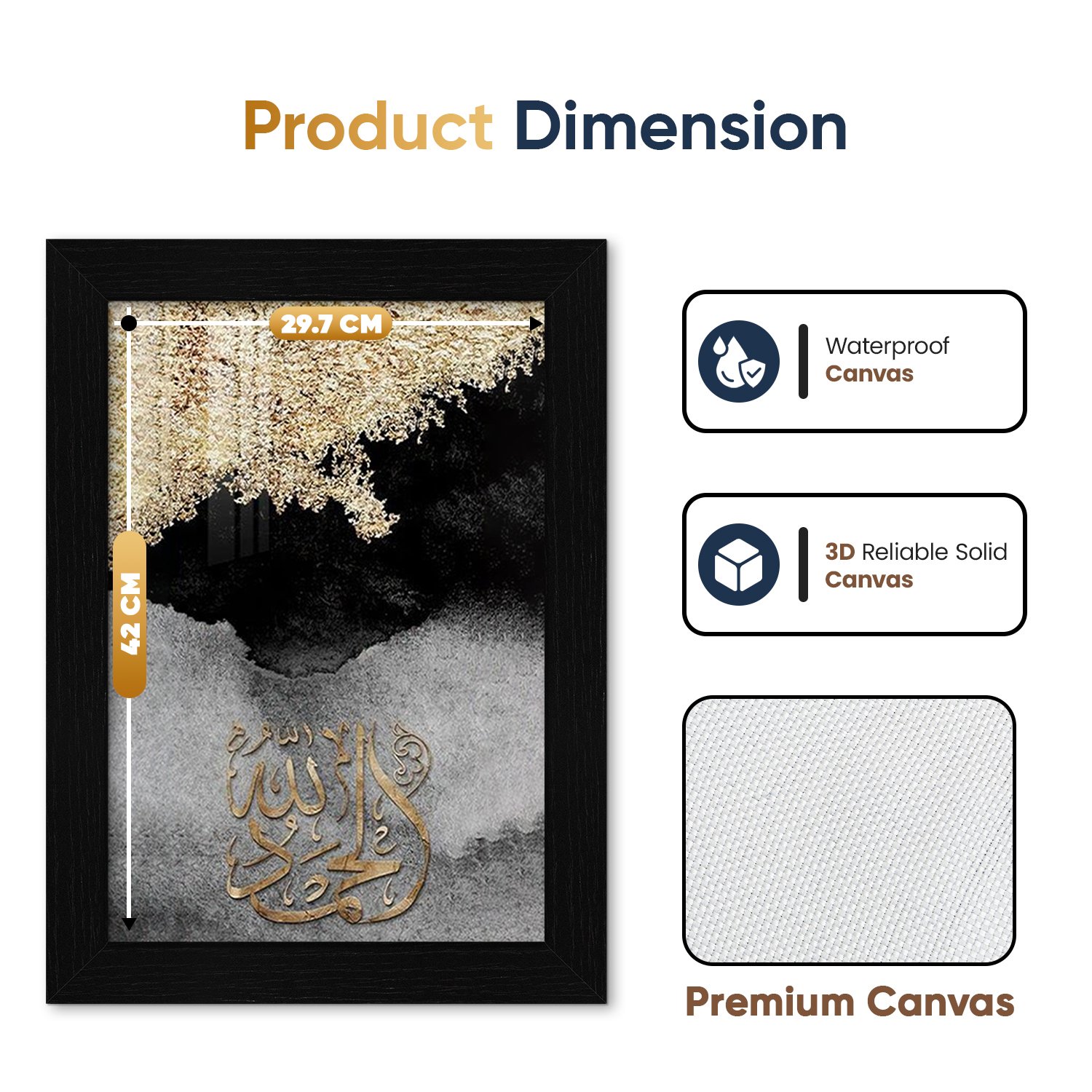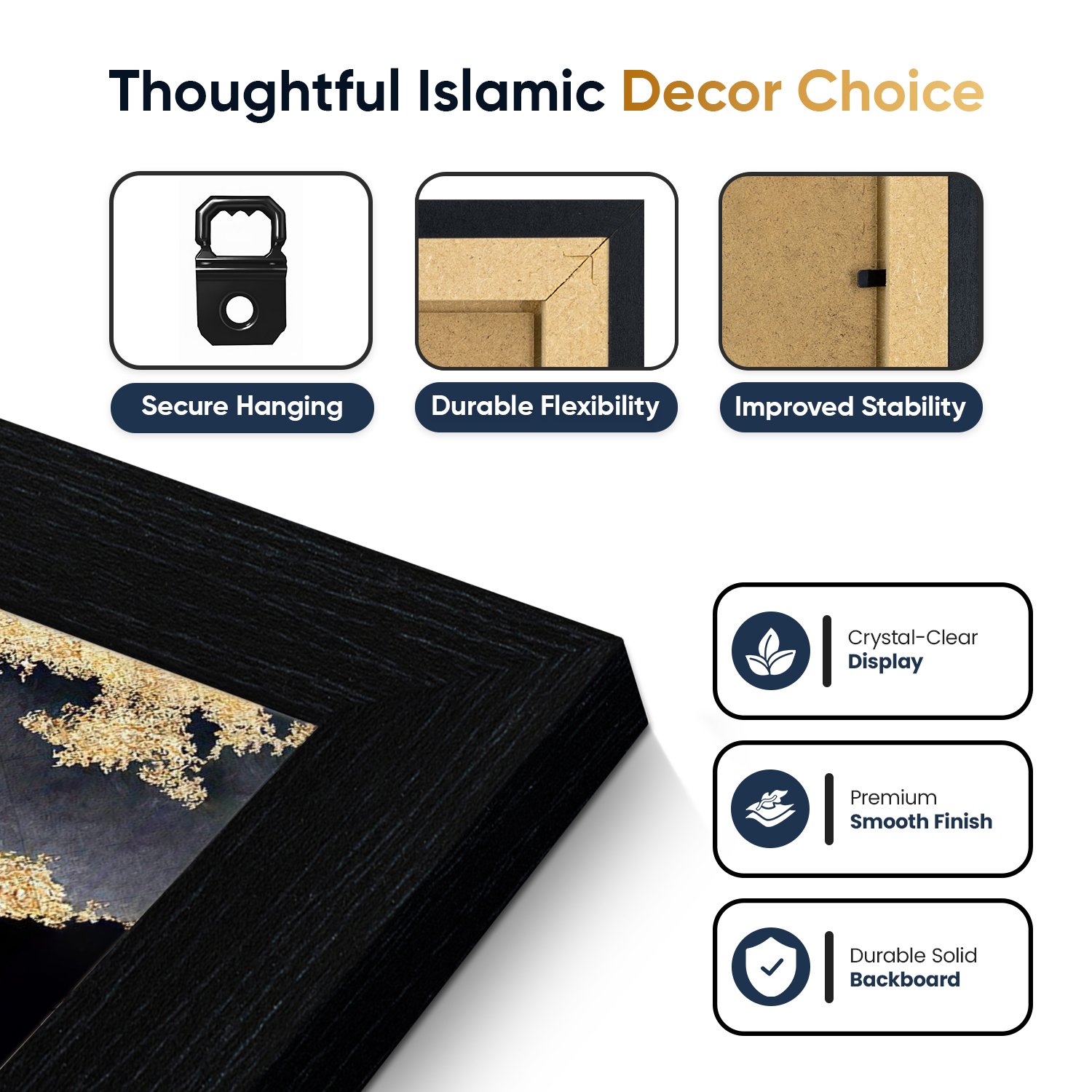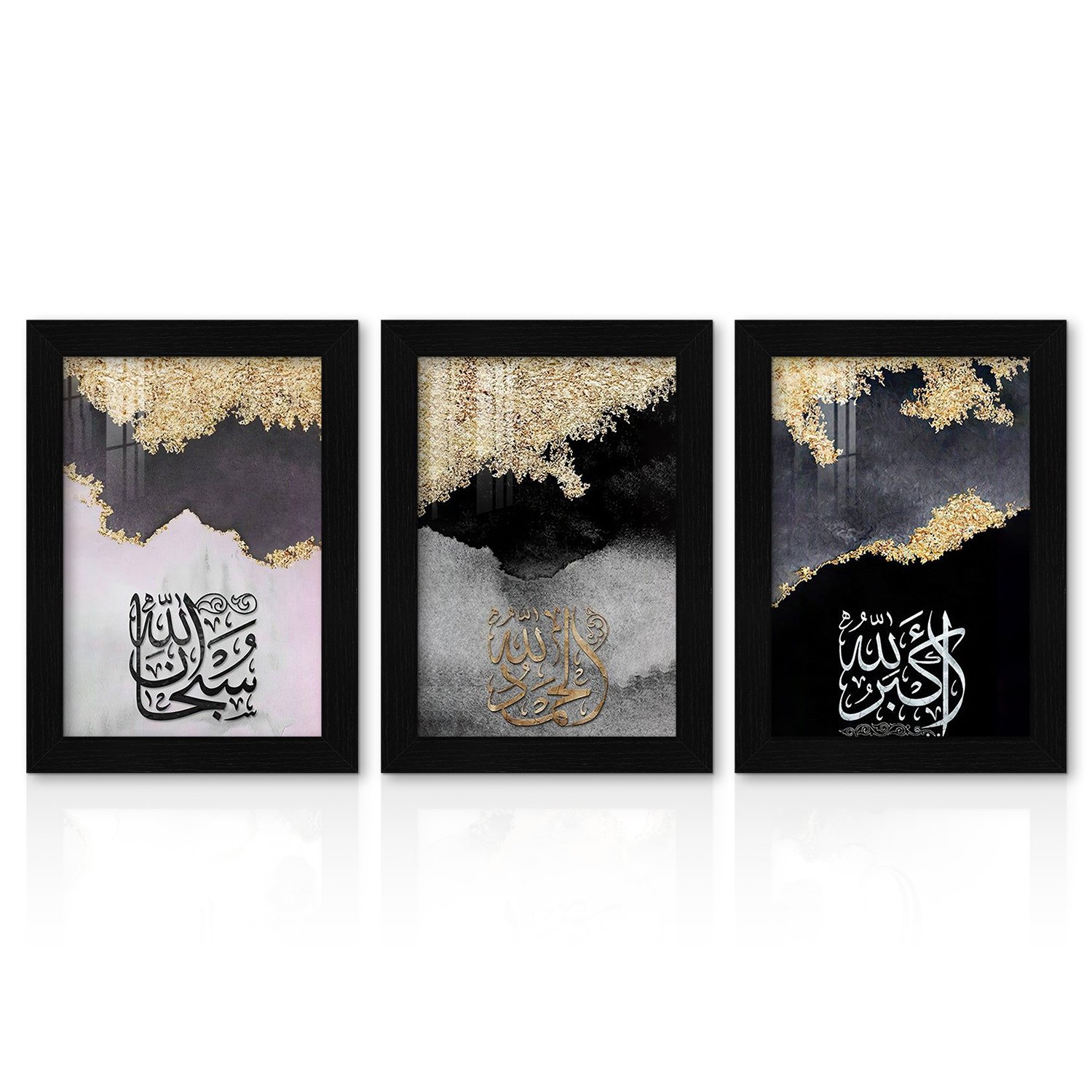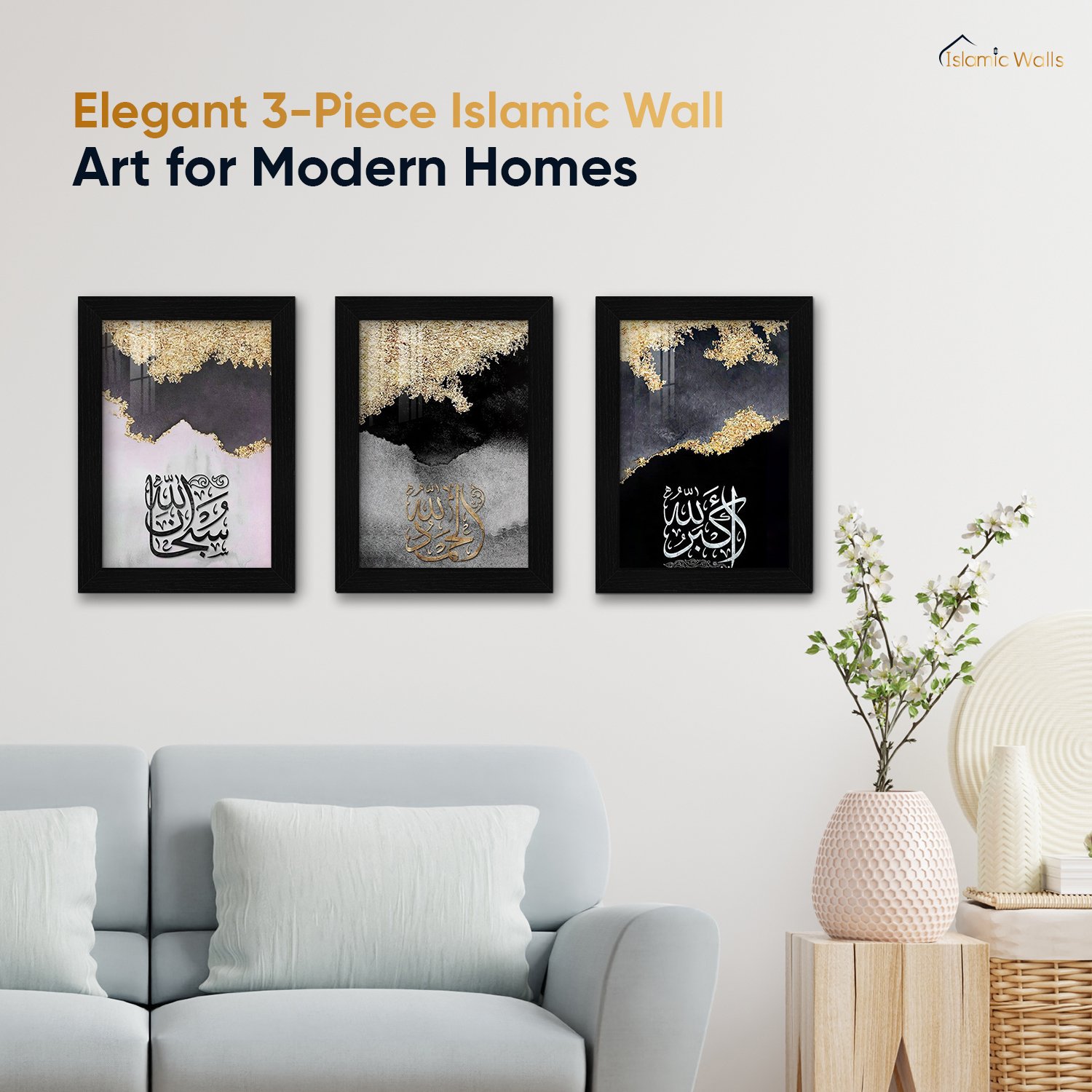 _x000D_This trio represents remembrance, gratitude, and devotion. The combination of grey and gold marble styling with black framing creates a bold yet refined look. It allows you to showcase meaningful Islamic phrases that complement your home décor while maintaining a strong visual presence.