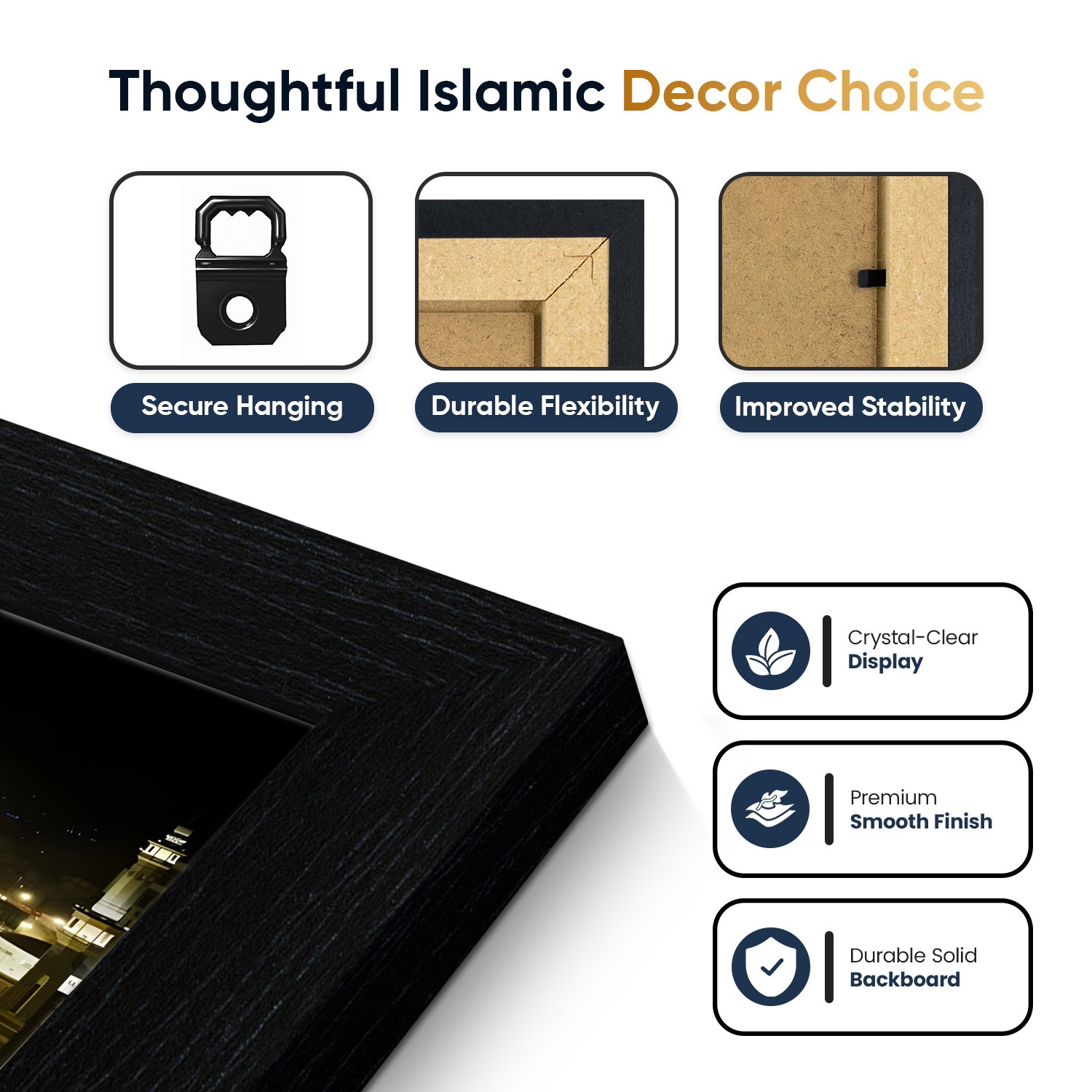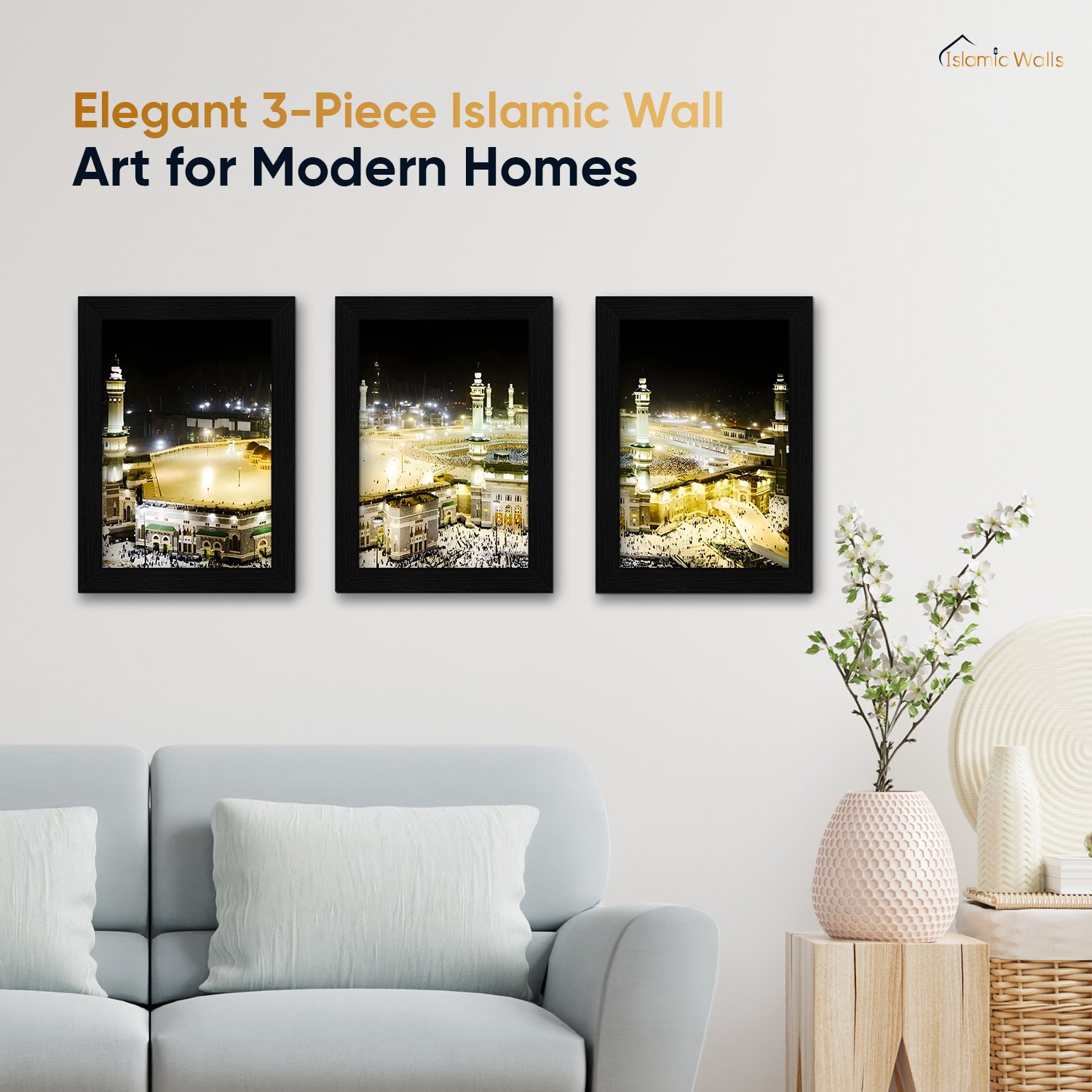 _x000D_Perfect for living rooms, bedrooms, prayer spaces, or offices, this 3-piece set combines artistry and devotion, making it a thoughtful gift for Islamic occasions.