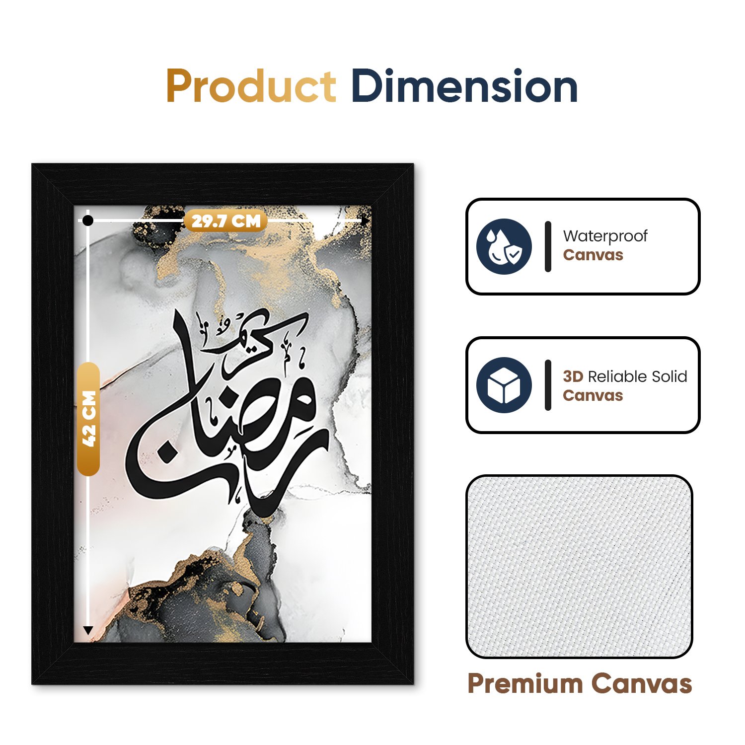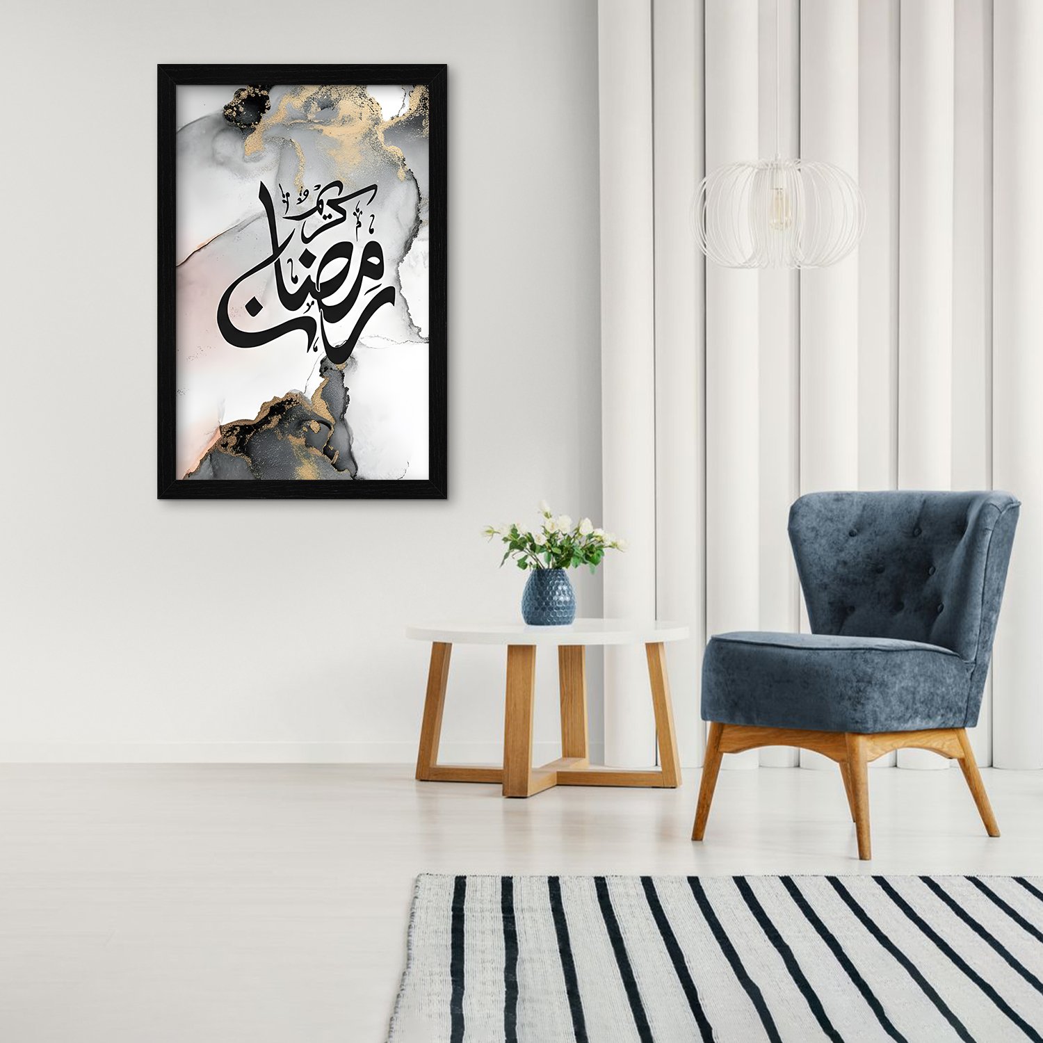 Celebrate the spirit of Ramadan and Eid with this elegant Islamic wall art set. Featuring “Eid Mubarak” and “Ramadan Kareem” in a coordinated black-and-white marble design, this collection adds a refined festive touch to your home décor.